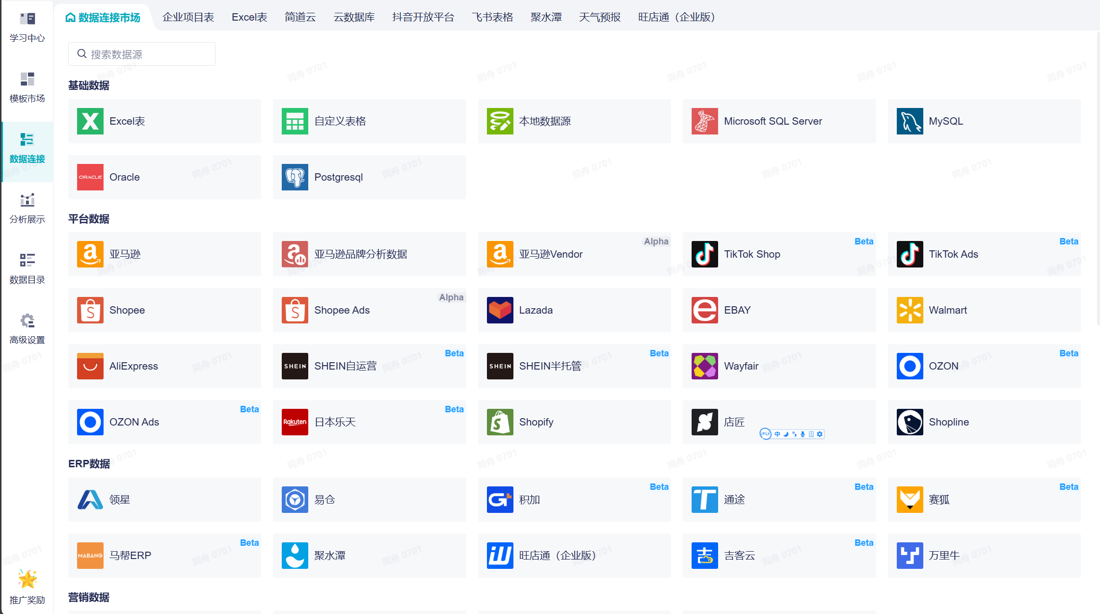 无需开发,授权即可接入各类平台及ERP数据源