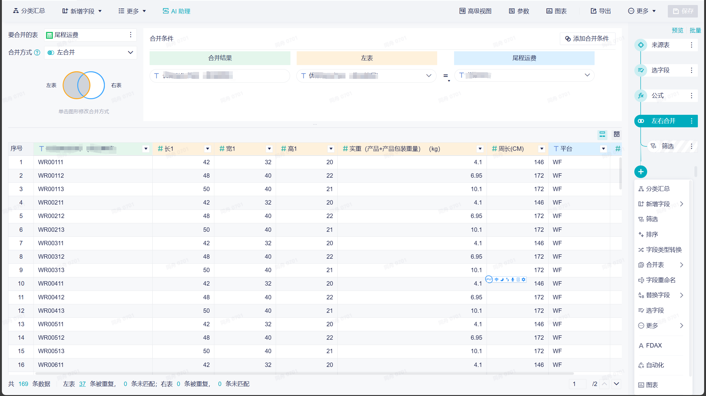 支持数据合并、数据透视、条件赋值以及行间计算、数据模型等60+算符